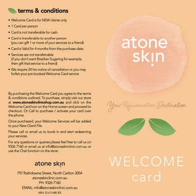 Exclusive New Client Offer – Atone Skin’s Welcome Card! Discover the Atone Skin difference with our Skin & Beauty Sampler Card, designed exclus...