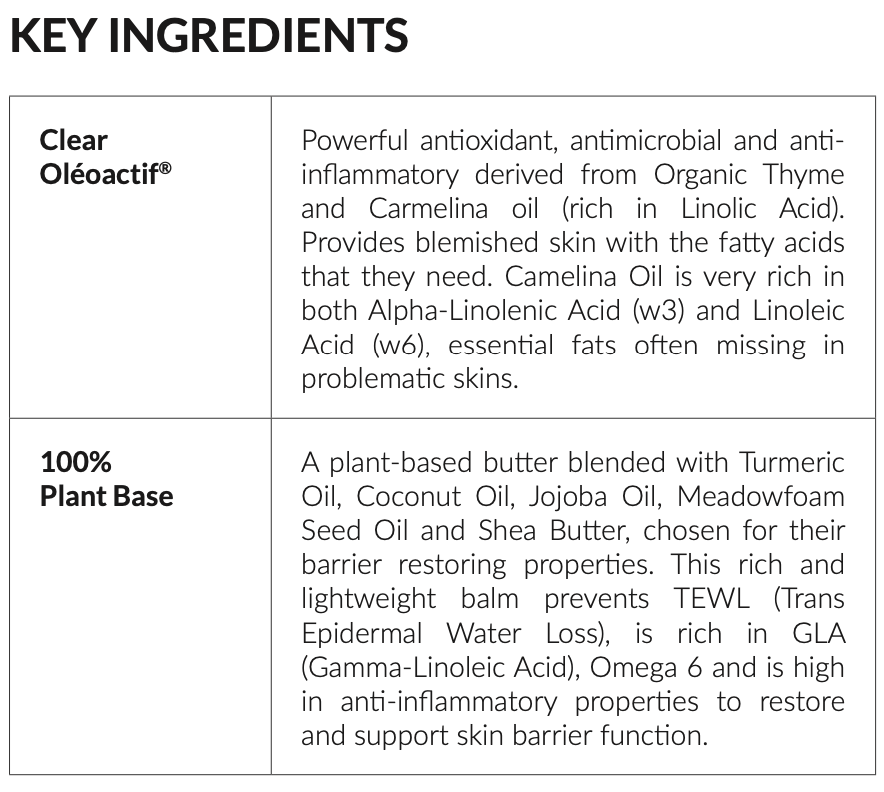 This decadent, skin quenching night balm provides antioxidant, antimicrobial and anti-inflammatory benefits to calm and clear acne prone skins.